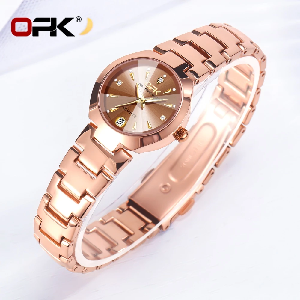 Bagi penyuka gaya elegan, OPK 8105 menjadi salah satu jam tangan wanita branded yang tampil sangat mewah. Menggunakan material stainless steel rantai dengan tone keemasan yang lembut, jam ini memberi kesan mahal tanpa harus menguras dompet.