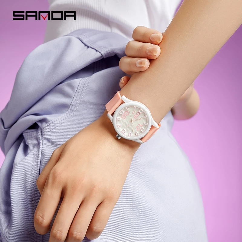 SANDA 3252 menawarkan tampilan kasual yang cocok untuk penggunaan harian. Strap rubber membuatnya ringan dan nyaman, sementara desain analog memberi aura feminim yang tidak berlebihan. Walaupun sederhana, jam ini cukup tahan air sehingga tetap aman saat terkena cipratan.