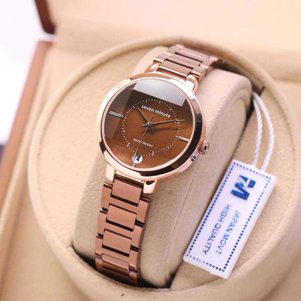 Seven Minute menawarkan desain unik berbentuk belimbing yang mencuri perhatian. Model ini cocok untuk pengguna yang ingin tampil beda dan tidak bosan dengan desain jam tangan biasa. Tampilannya modern, elegan, dan cukup tahan air. Meskipun bentuknya unik, jam ini tetap nyaman dipakai. Pengguna yang suka desain unik dan fashionable akan menyukai model ini karena punya karakter yang kuat.